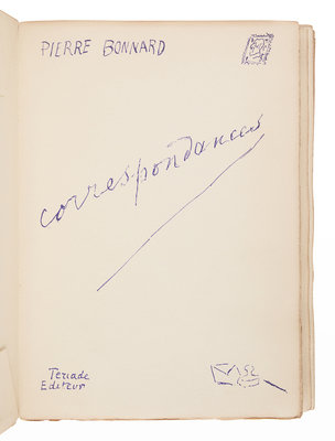 BONNARD, Pierre (1867-1947). Corespondences. Paris: Éditions de la Revue Verve, 1944.