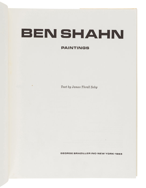 [SHAHN, Ben (1898-1969)]. SOBY, James Thrall. Ben Shahn: Paintings. New York: George Braziller, 1963.