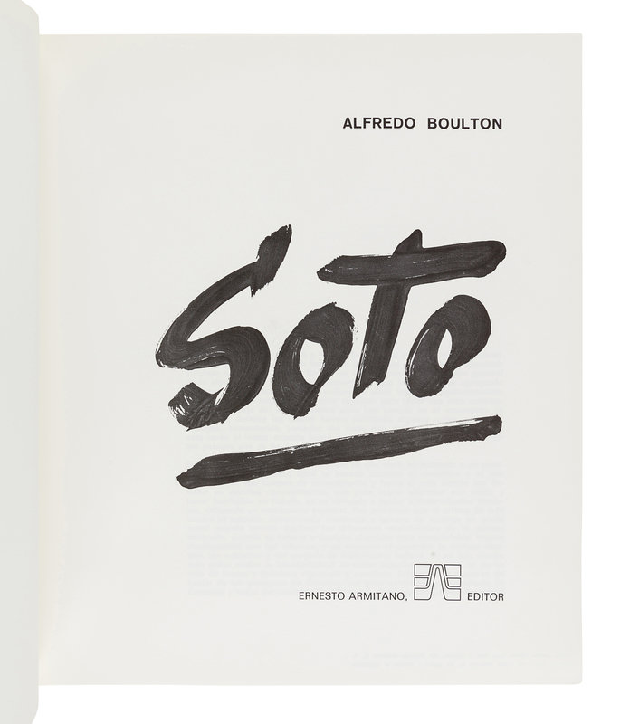 [SOTO, Jesus Rafael (1923-2005)]. BOULTON, Alfredo. Soto. Caracas, Venezuela: Ernesto Armitano Editor, 1973.