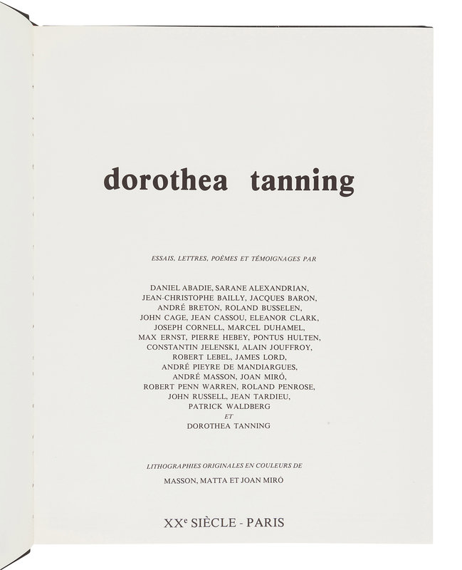 TANNING, Dorothea (1910-2012). Dorothea Tanning: Essais, Lettres, Poèmes et Témoignages. Paris: XXe Siècle, 1997.