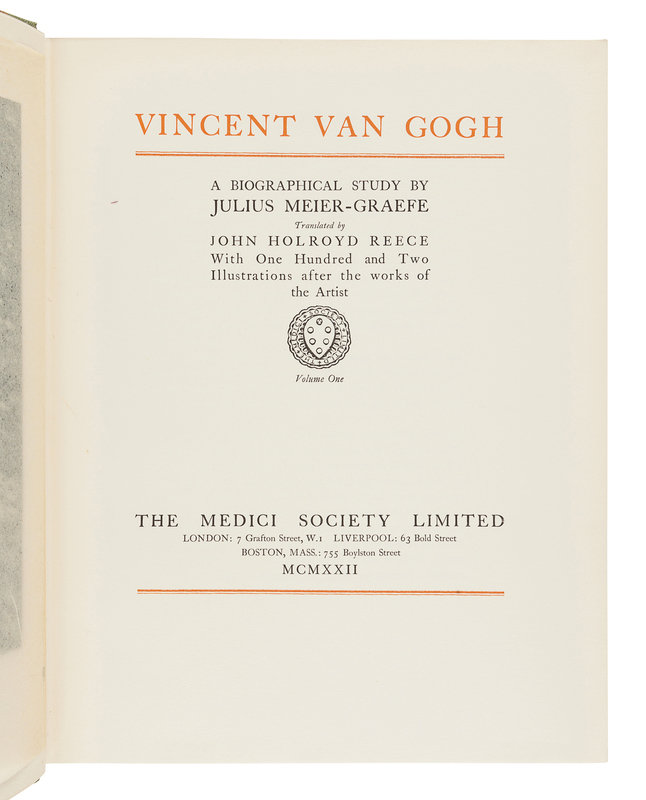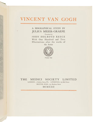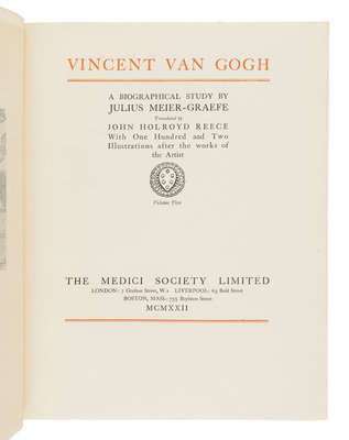 [VAN GOGH, Vincent (1853-1890)]. MEIER-GRAEFE, Julius. Vincent Van Gogh. REECE, John Holroyd, translator. London, Liverpool, Boston: The Medici Society Limited, 1922.