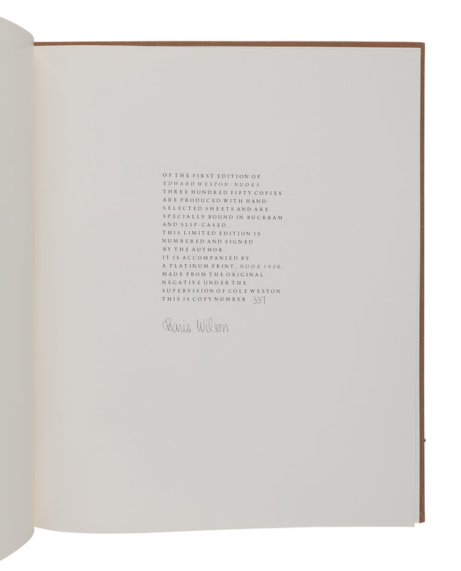11 1/4 x 9 1/2 inches, 116pp. Numerous reproductions. (Lacking original platinum print, Nude 1920.) Original gilt-lettered brown cloth; original cloth slipcase. LIMITED EDITION, number 337 of 350 copies SIGNED BY WILSON.