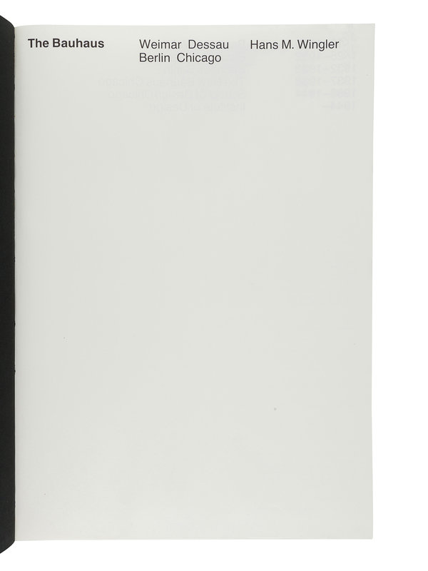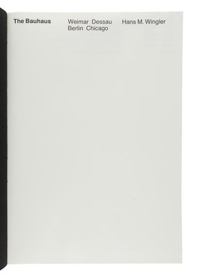 WINGLER, Hans M. (1920-1984). The Bauhaus: Weimar, Dessau, Berlin, Chicago. Cambridge, MA and London: The MIT Press, 1969.