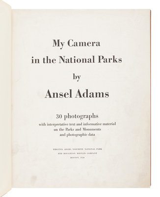 ADAMS, Ansel (1902-1984). My Camera in the National Parks. Boston: Virginia Adams, Yosemite National Park and Houghton Mifflin Company, 1950.