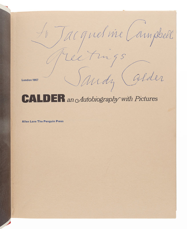 CALDER, Alexander (1898-1976). Calder. An Autobiography with Pictures. London: Allen Lane The Penguin Press, 1967.