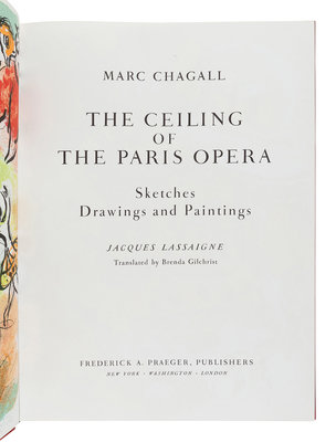 CHAGALL, Marc (1887-1995). -- LASSAIGNE, Jacques. Mark Chagall: The Ceilings of the Paris Opera. Brenda Gilchrist, translator. New York, Washington, London: Frederick A. Praeger, Publishers, 1966.