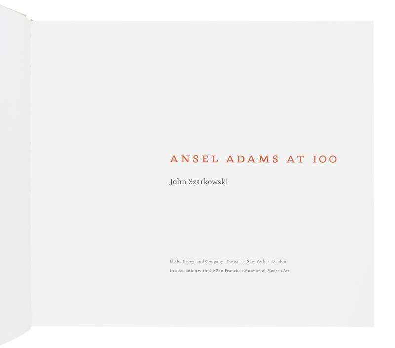 [ADAMS, Ansel (1902-1984)]. SZARKOWSKI, John. Ansel Adams at 100. Boston, New York, London: Little, Brown and Company, 2001.
