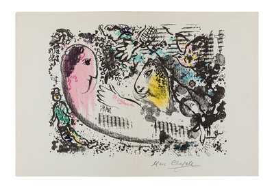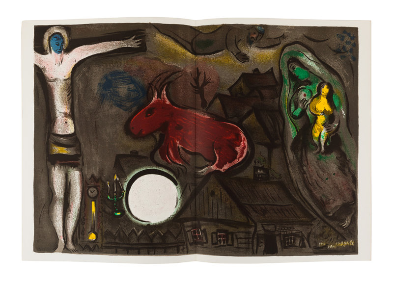 15 x 11 inches. Original lithograph and lithographed wrapper by Chagall. Wrapper SIGNED BY CHAGALL.