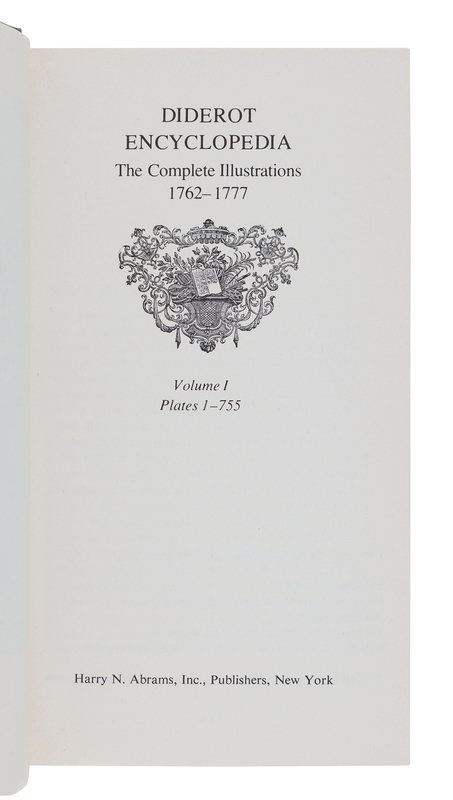 DIDEROT, Denis (1713-1784). Diderot Encyclopedia. The Complete Illustrations 1762-1777. New York: Harry N. Abrams, Inc., 1978.