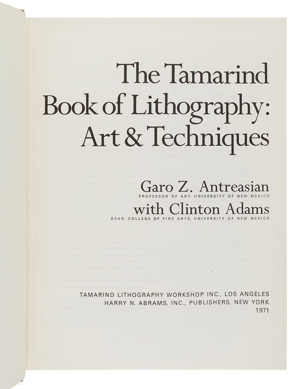 ANTREASIAN, Garo Z. (1922-2018). – ADAMS, Clinton (1918-2002). The Tamarind Book of Lithography: Art & Techniques. Los Angeles: Tamarind Lithography Workshop Inc.; New York: Harry N. Abrams, Inc., Inc., 1971.