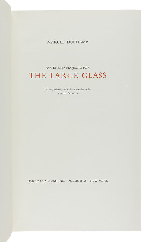[DUCHAMP, Marcel (1887-1968)]. SCHWARZ, Arturo, editor. Notes and Projects for The Large Glass. New York: Harry N. Abrams, Inc., 1969.
