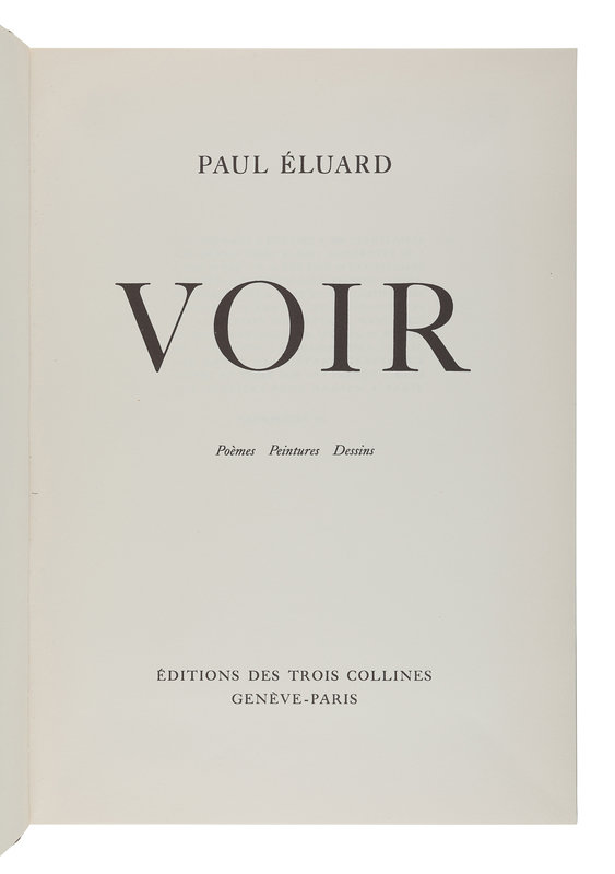 ÉLUARD, Paul (1895-1952). Voir. Poèmes, Peintures, Dessins. Geneva and Paris: Éditions des Trois Collines, 1948.