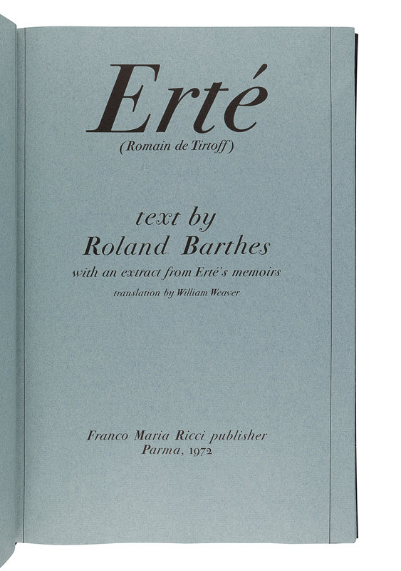 [ERTÉ (1892-1990)]. BARTHES, Roland. Erté. Parma, Italy: Franco Maria Ricci, 1972.