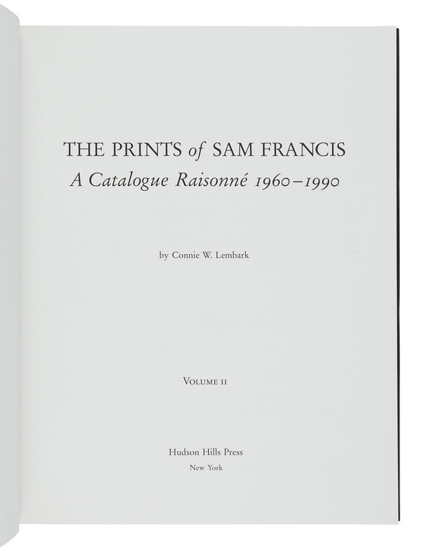 [FRANCIS, Sam (1923-1994)]. LEMBARK, Connie W. The Prints of Sam Francis: A Catalogue Raisonné. New York: Hudson Hills Press, 1992.