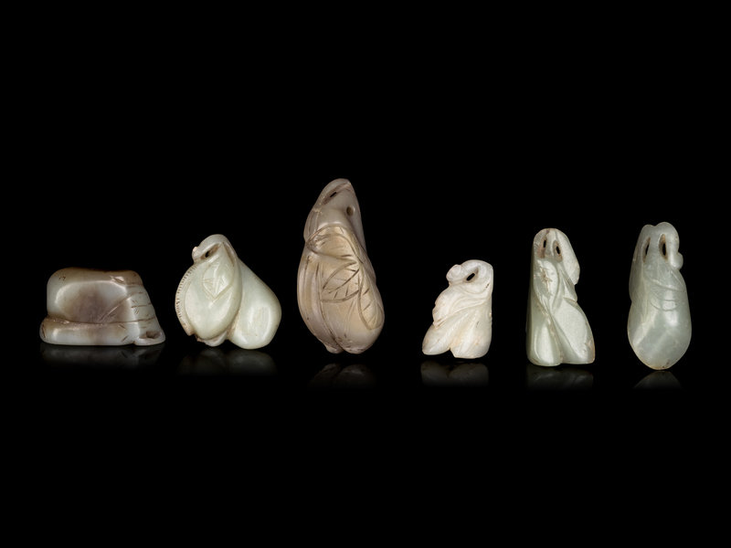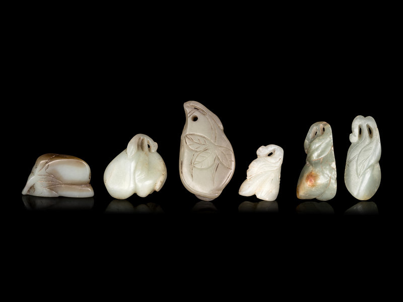 Six Chinese Celadon Jade Carvings of Aubergines