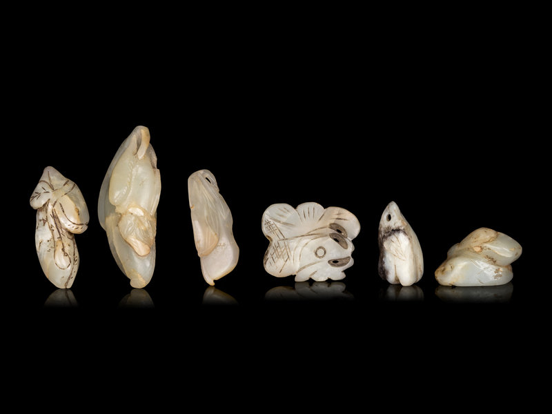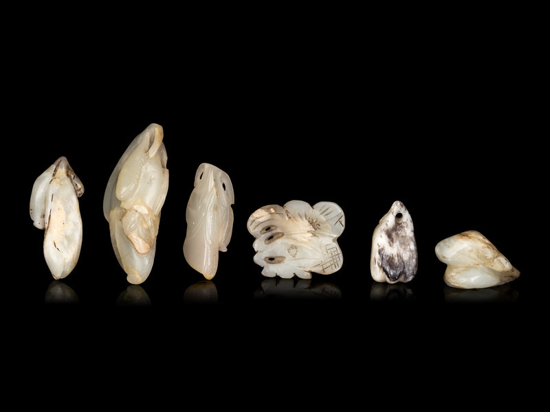 Six Chinese Celadon Jade Carvings of Aubergines