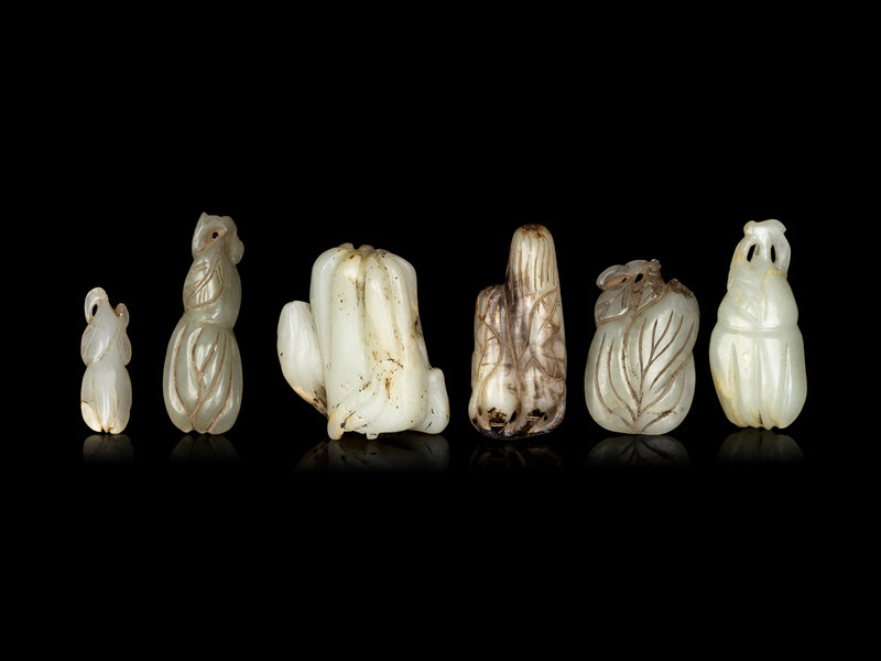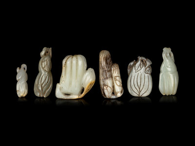 Six Chinese Celadon Jade Carvings of Buddha's Hand Citron