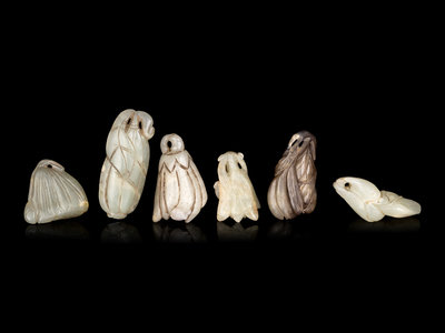 Six Chinese Celadon Jade Carvings of Buddha's Hand Citron