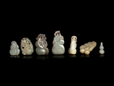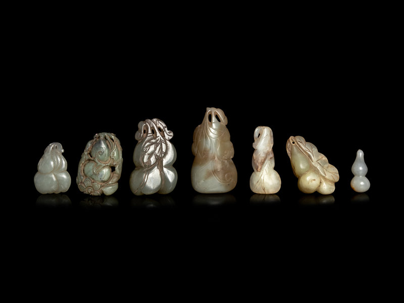 Seven Chinese Celadon Jade Carvings of Double Gourds