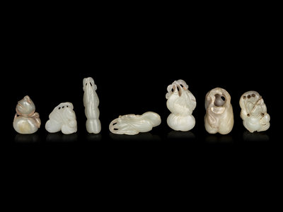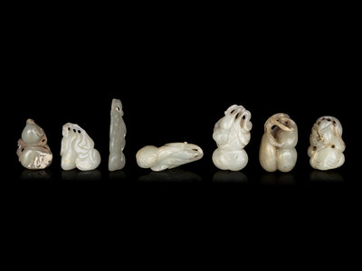 Seven Chinese Celadon Jade Carvings of Double Gourds