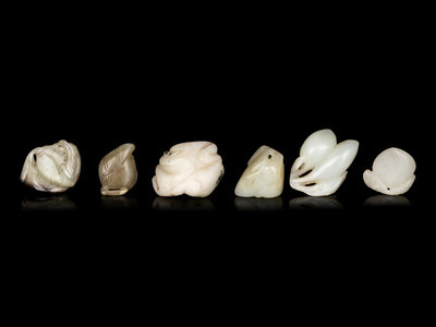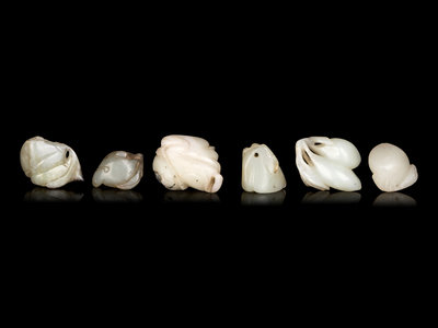 each softly polished to show a plumb fruit borne of incised and reticulated leaves, softly polished.