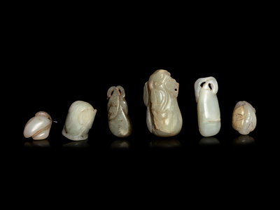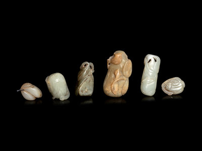 Six Chinese Celadon Jade Carvings of Melons