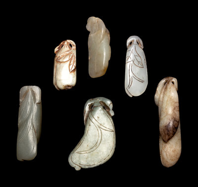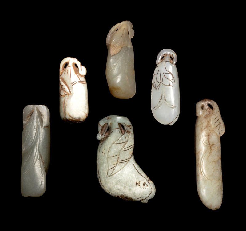Six Chinese Celadon Jade Carvings of Melons