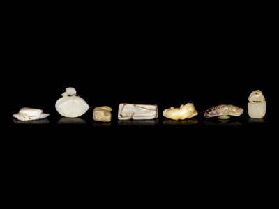 Seven Chinese Celadon Jade Carvings of Animals