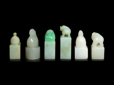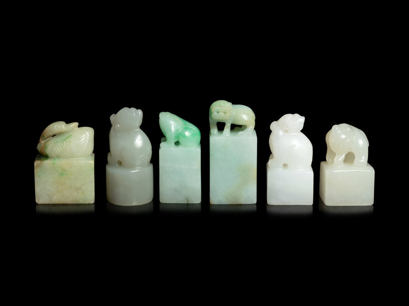 comprising two white jade examples, one celadon examples, and three jadeite examples.