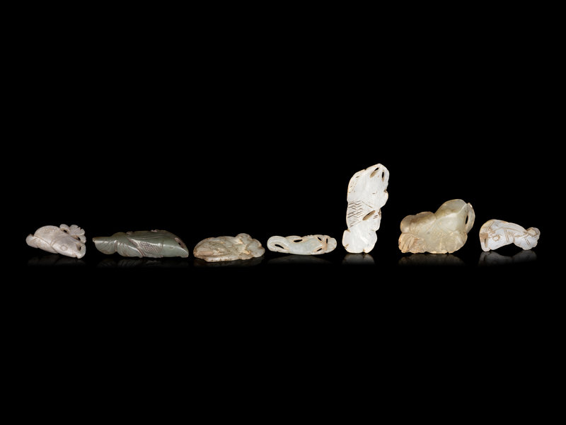 Seven Chinese Celadon Jade Carvings of Fish