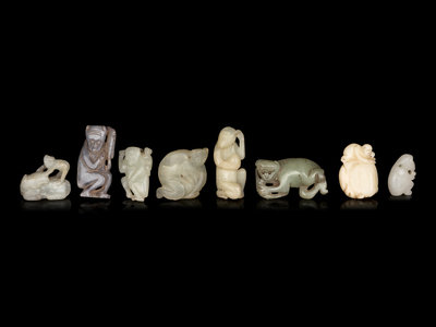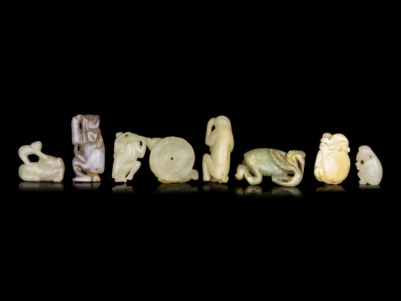 Eight Chinese Jade Carvings of Monkeys