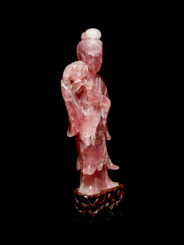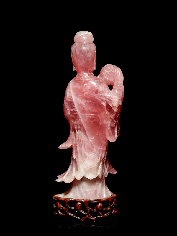 A Large Chinese Rose Quartz Figure of Female Immortal