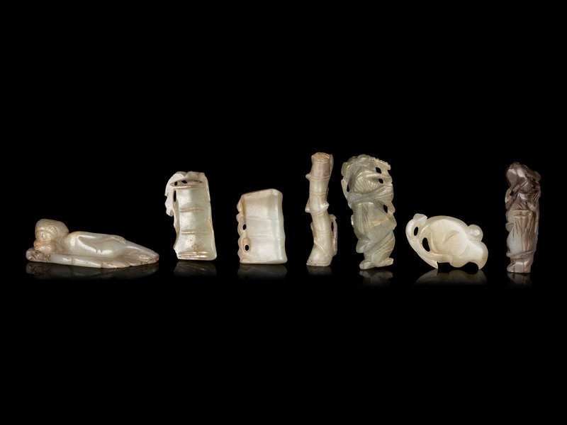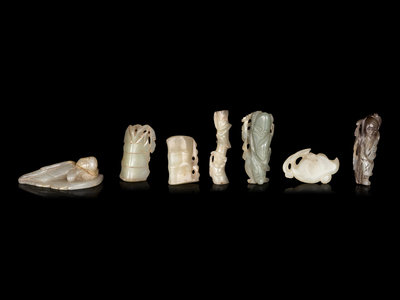 Seven Chinese Celadon Jade Carvings