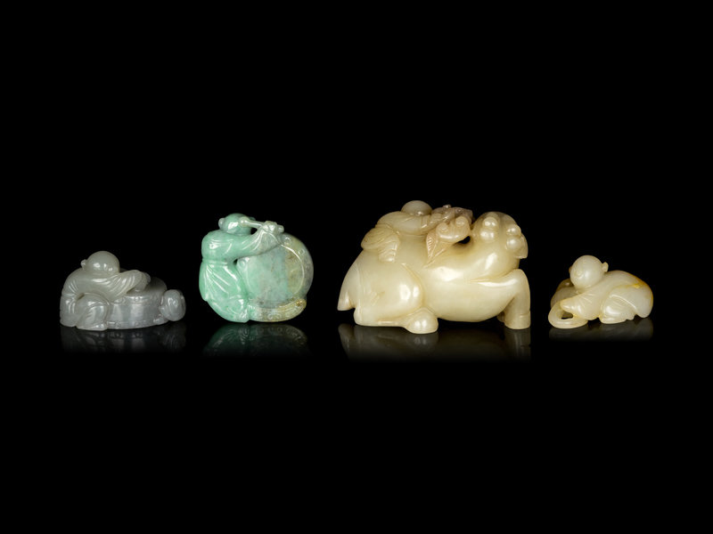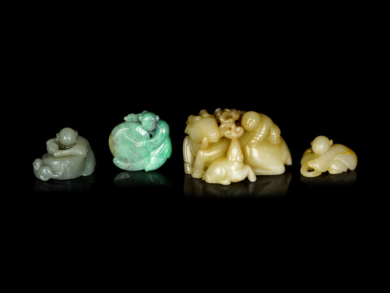 Four Chinese Jade and Jadeite Carvings of Boys
