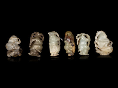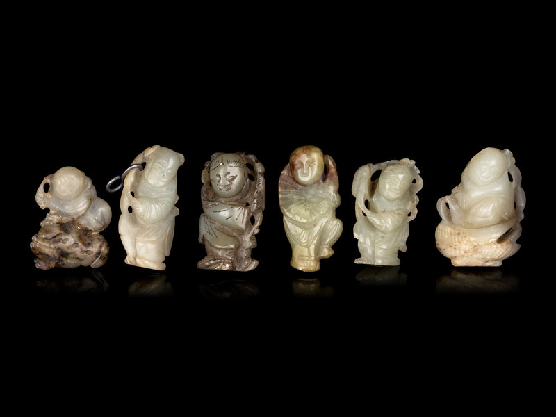 comprising one grey example, two pale celadon examples, and three celadon examples.