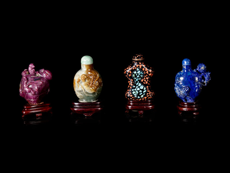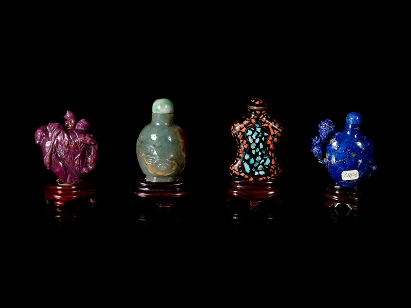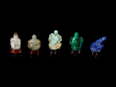 Nine Chinese Carved Hardstone Snuff Bottles