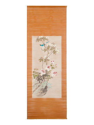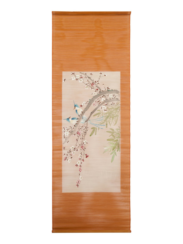 each depicting birds perched on trees, in the form of hanging scrolls.
