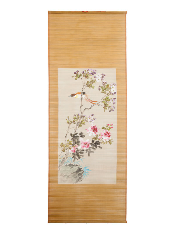 Three Chinese Bamboo Mat Paintings