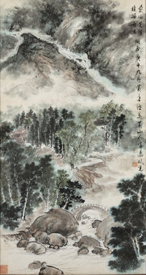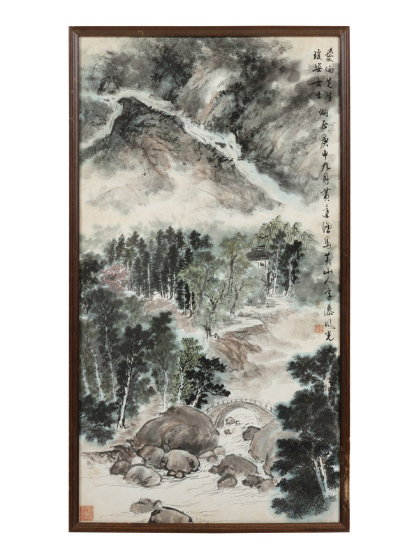 signed with a dedication, dated year Gengshen(1980), with two artist seals.