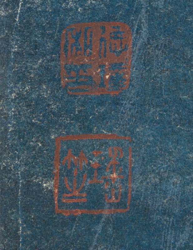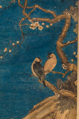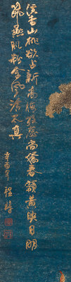 color prints mounted as two hanging scrolls