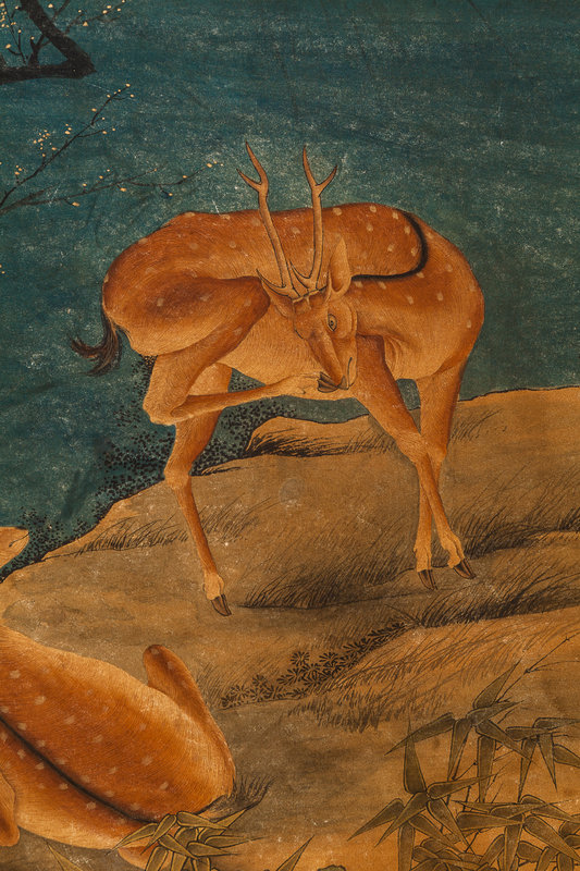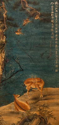 Birds, Deer, Mountainous Landscape