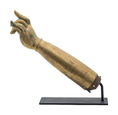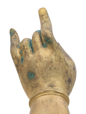 cast as a large hollow left hand, each of the poised fingers skilfully rendered with a slightly recessed fingernail.