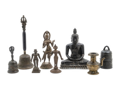 comprising figures, bells and kendi.