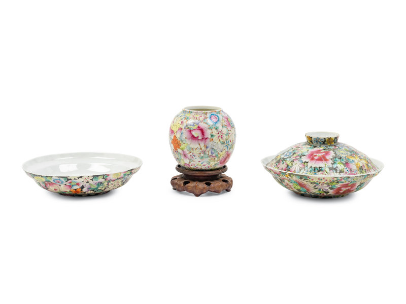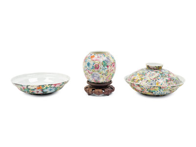 Three Chinese Famille Rose Porcelain 'Millefleur' Articles