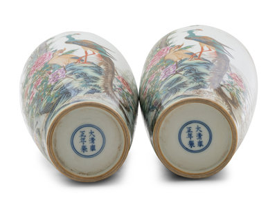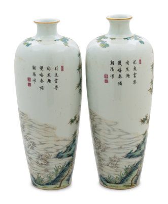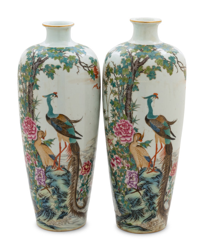 A Pair of Chinese Famille Rose Porcelain Vases, Meiping