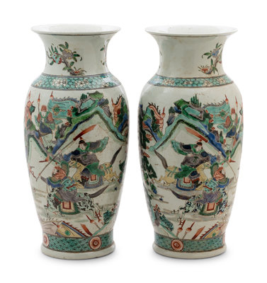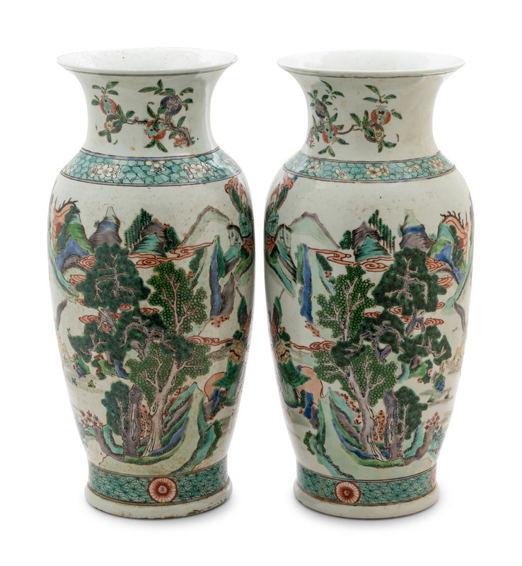 A Pair of Chinese Famille Verte Porcelain Vases