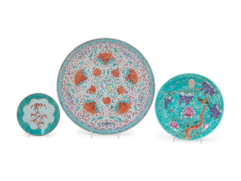 Five Chinese Famille Rose Turquoise Ground Porcelain Articles