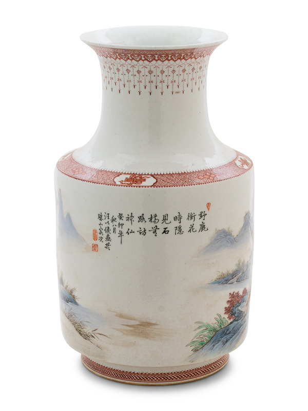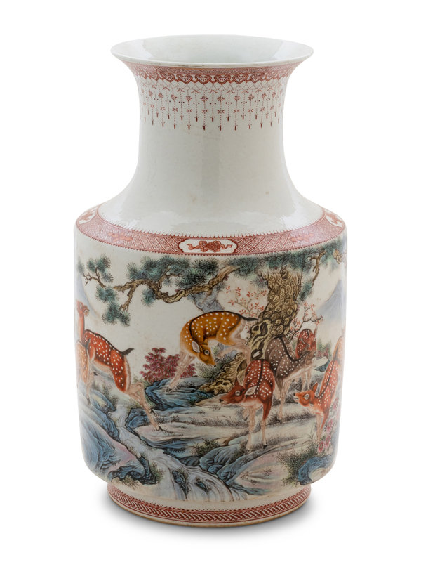 A Chinese Famille Rose 'Deer' Yen-Yen Vase