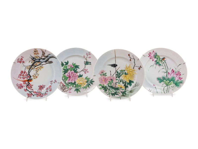 Four Chinese Famille Rose Porcelain 'Flowers' Plates