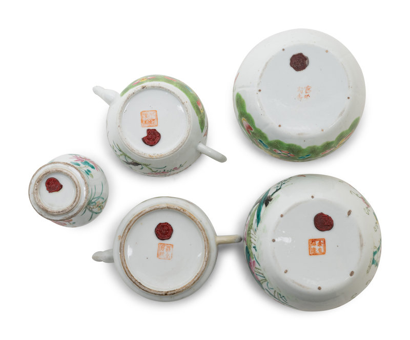 Six Chinese Famille Rose 'Flowers and Butterflies' Porcelain Articles